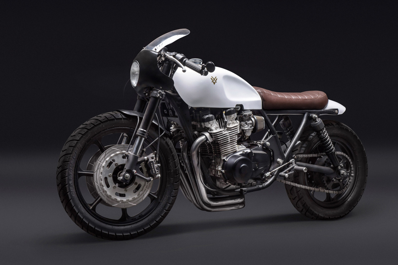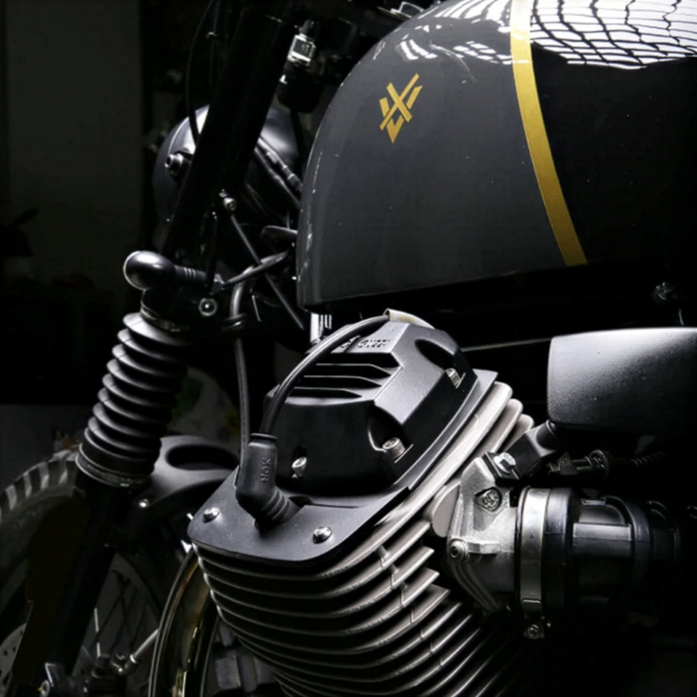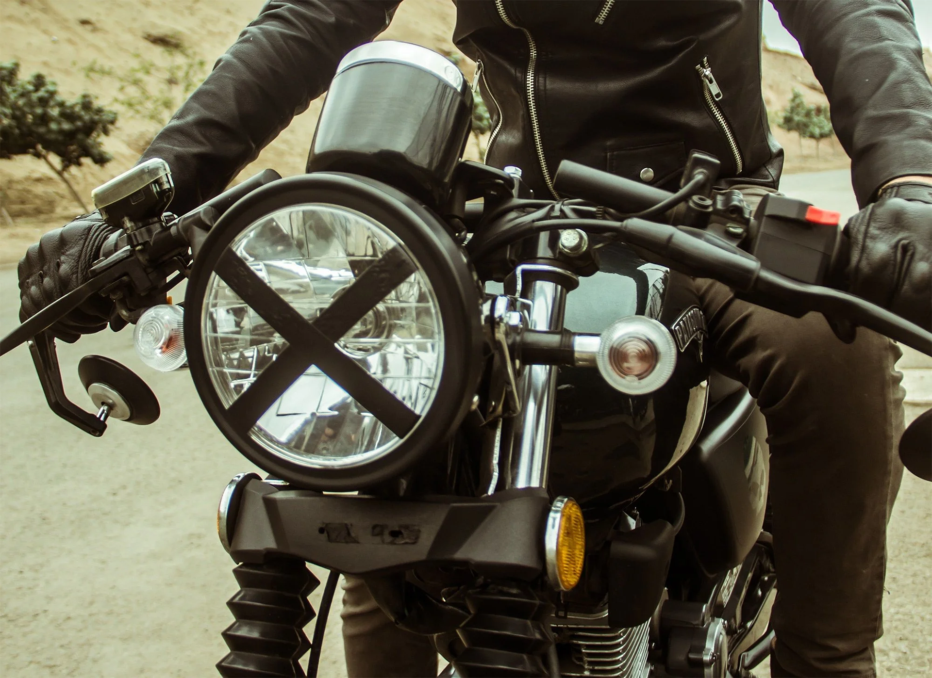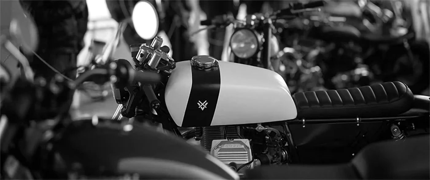 In the cafe racer language, the X tape on the headlight was a sign of recognition and respect. It originated from a practical need: during races, it was applied so that, in the event of a crash, no glass would be left on the track.